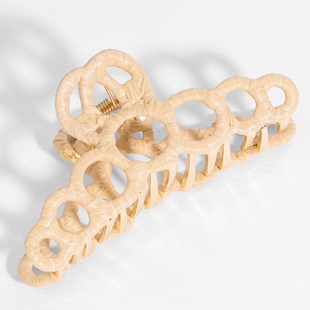 An everyday essential claw clip, reimagined with cream raffia wrapping for a modern textured look.