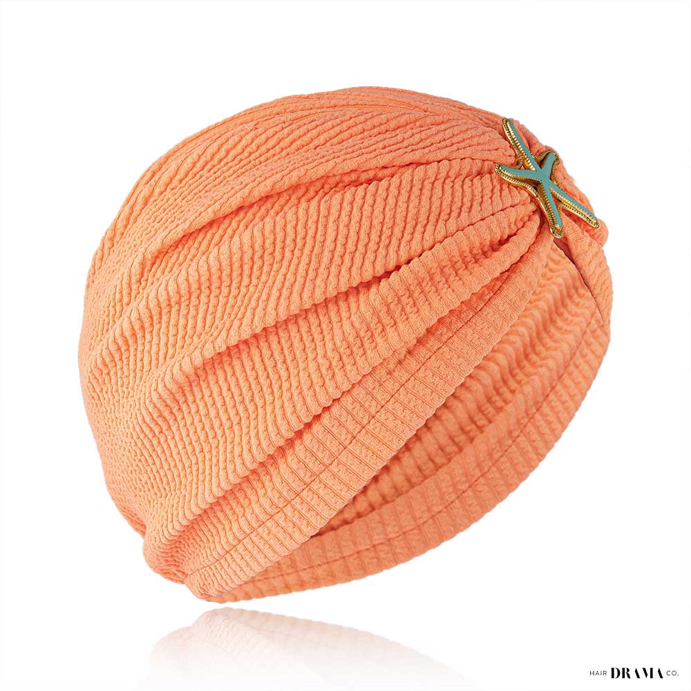 Neon Orange Ribbed Turban with Starfish Metal Broach