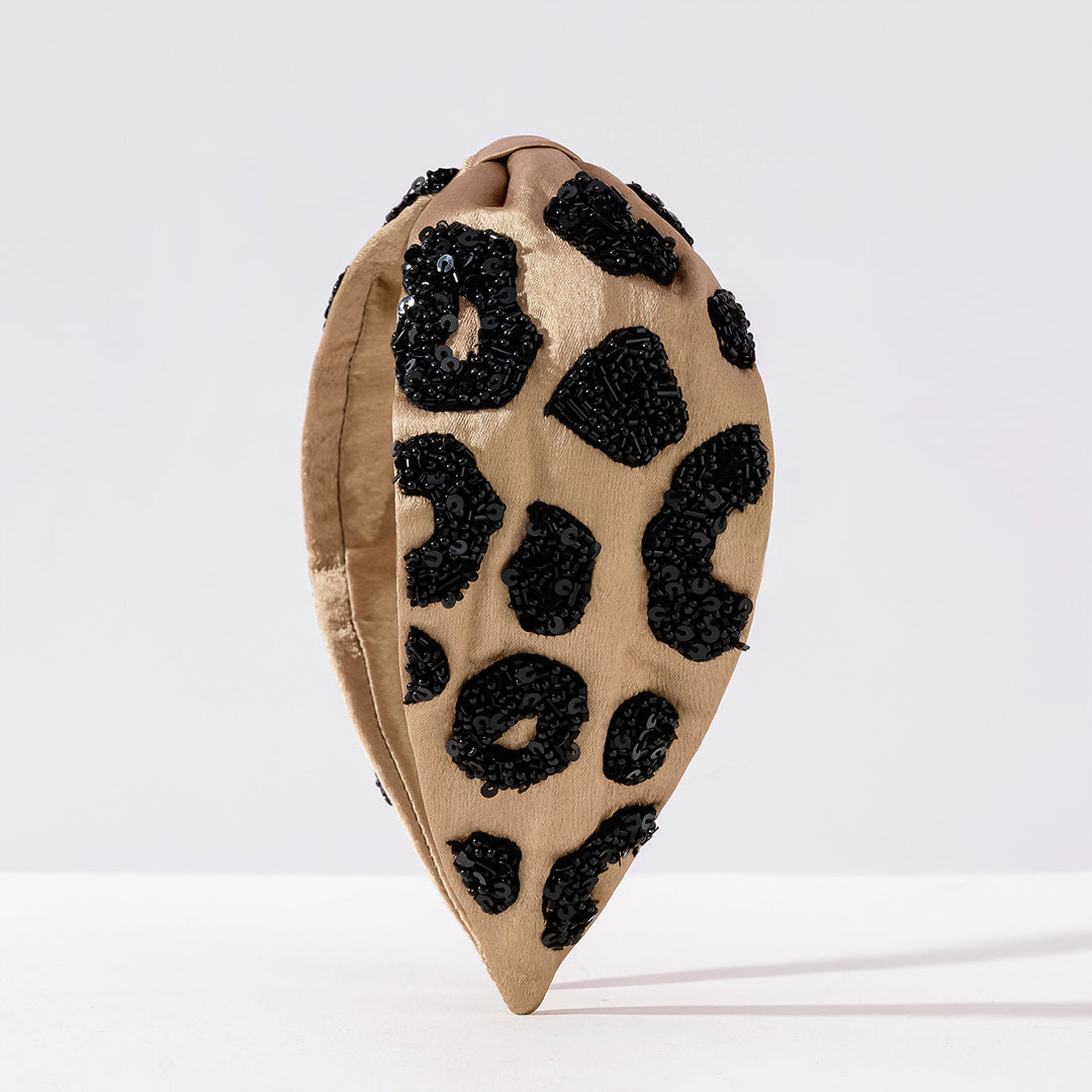 This luxe knotted hair band is meticulously hand-embroidered with premium beads, intricately crafted to perfection. The rich, classic hues dance across a classic knotted silhouette, making it a true statement of timeless elegance.