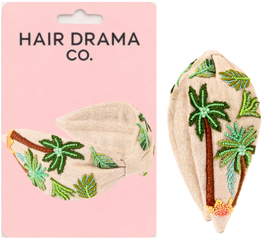 Palm Escape is a lightweight headband designed for easy, sun-soaked days. Crafted on a soft jute neutral fabric, it features delicate palm tree embroidery in fresh green tones that bring a relaxed, tropical charm to your look.