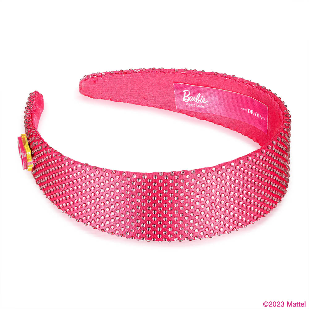 Fita de cabelo plana com strass e pendente da Barbie - Rosa choque