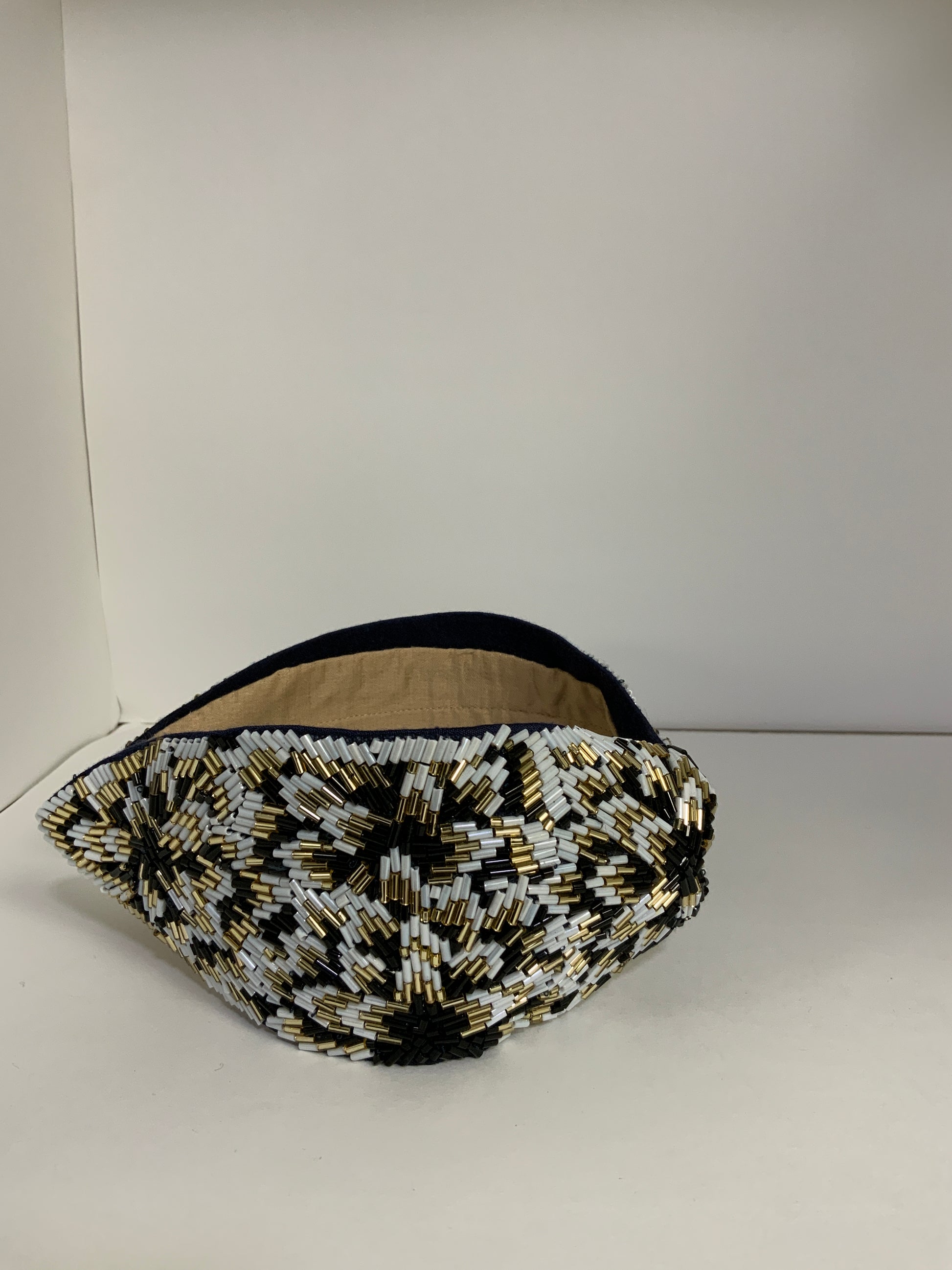 Featuring delicate gold embroidery on a classic black silhouette, this knotted headband adds subtle drama and refined shine to both day and evening looks.